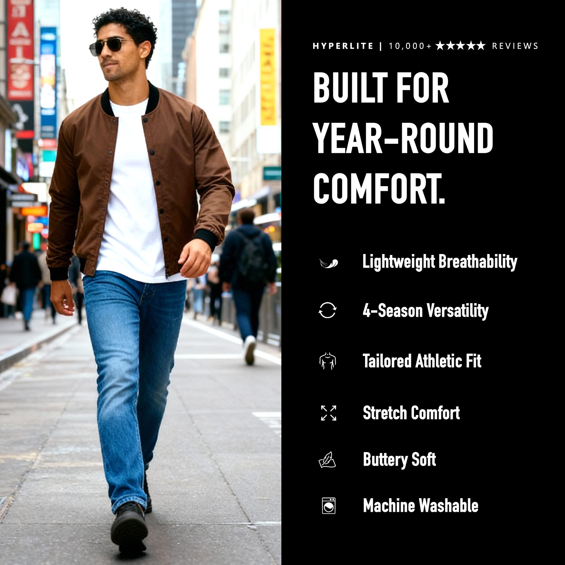 Our signature lightweight bombers feature our patented HYPERLITE fabric for maximum comfort and year-round versatility.